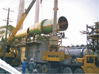 | Instalação do invólucro do forno rotativo no local | Instalação da base do forno rotativo no local | Instalação da parte principal do forno rotativo no local |