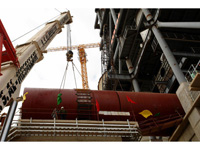 | Instalação da suspensão do pré-aquecedor no local | Instalação do moinho vertical no local | Instalação do grupo de moinho de colas no local |